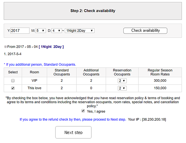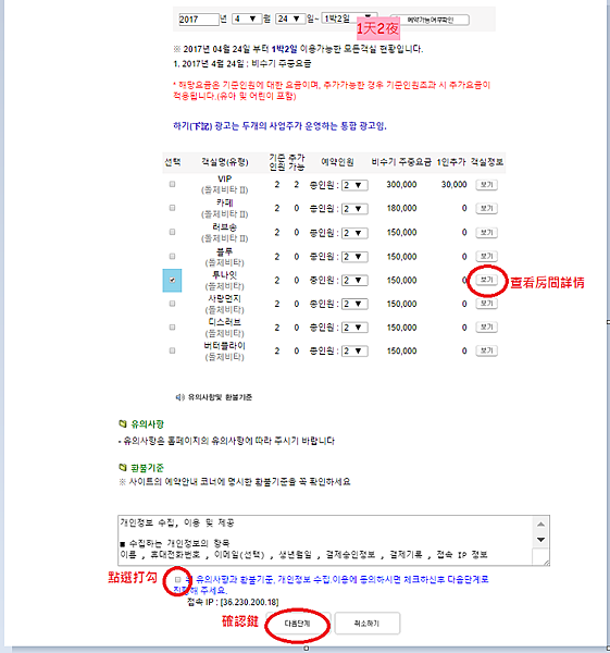 點擊自己想要的房間後會出現以下畫面,確認之後就請點確認鍵吧