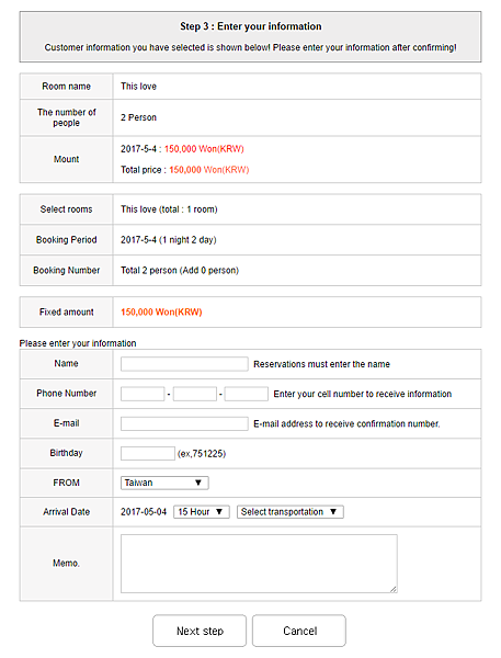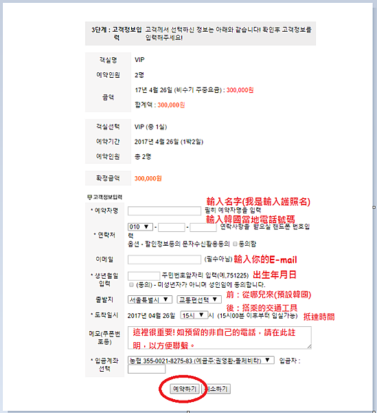 一樣輸入自己的資料(我用韓文預定完才發現有英文版><)
